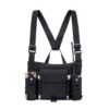 Front radio pockets with strap: You can put 2 walkie talkies side and the strap will fix the radio antenna so that it fits very tightly.