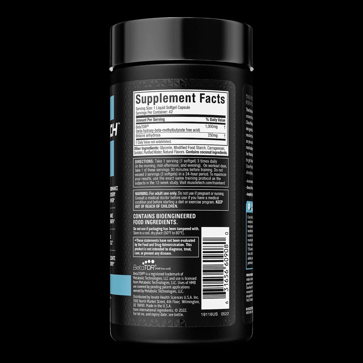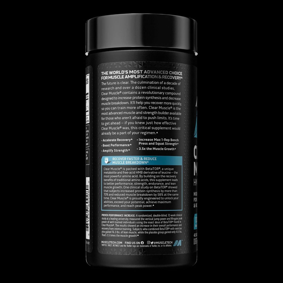 Clear Muscle Next Gen is a super-concentrated, single-pill dose. It supplies a revolutionary muscle-building compound called Betator, which is a unique, cutting-edge metabolite and free acid derivative of leucine and HMB. This one-of-a-kind compound unlocks the true potential of HMB for unprecedented bioavailability, effectiveness, and results. Betator works to dramatically amplify protein synthesis through the motor pathway while simultaneously fighting muscle breakdown by inhibiting the UPP pathway. This puts the body into the perfect state to build muscle. There is no other supplement like this, and it is exclusively available to Muscletech in a clear liquid pill.