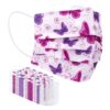 MXM Face Mask – 3 Ply Disposable Butterfly Print Mask – Pink & Purple (Pack of 50)