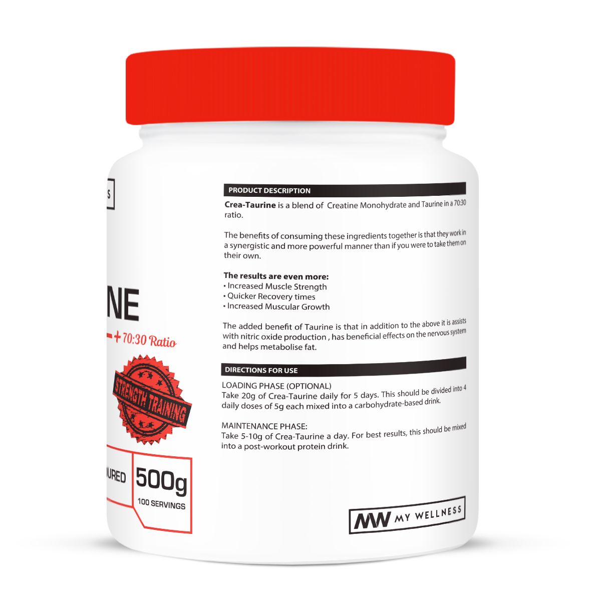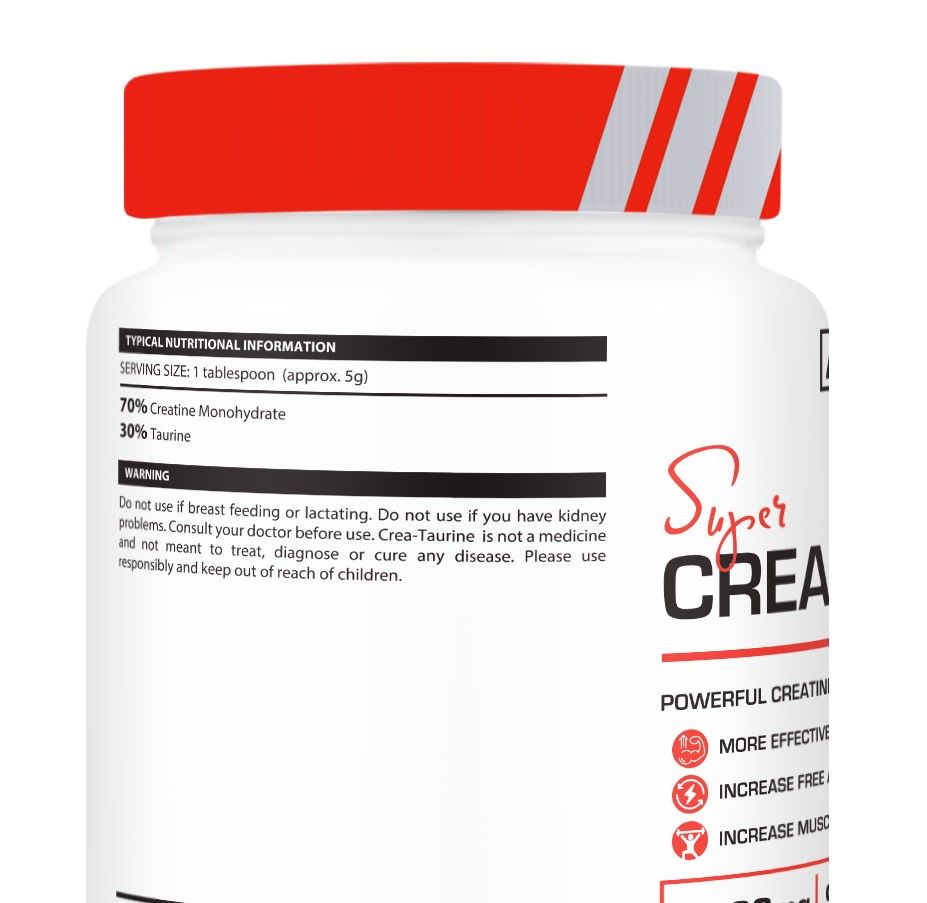 Crea-Taurine is a blend of Creatine Monohydrate and Taurine in a 70:30 ratio.