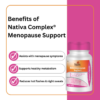 Nativa Complex Menopause Support is scientifically formulated with multiple nutrients including herbal extracts red clover, dong quai and ginseng as well as isoflavones and vitamins to keep you feeling comfortable and healthy during this period of your life cycle.