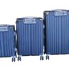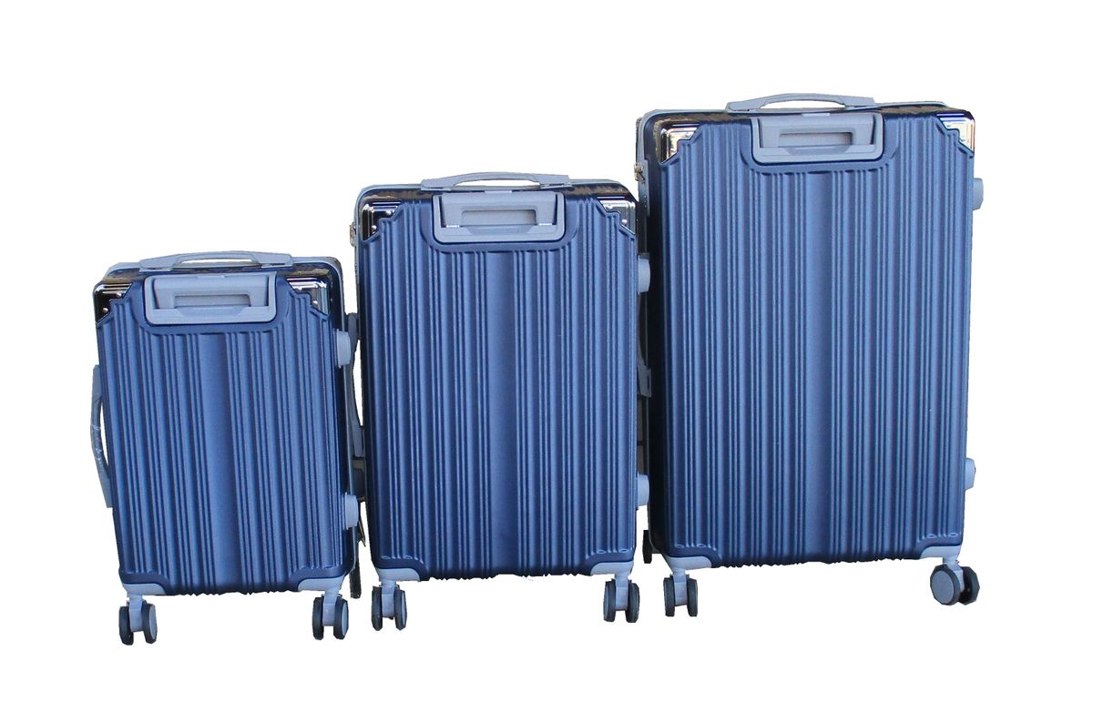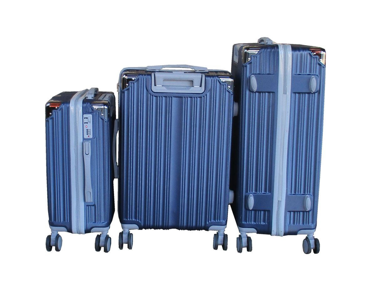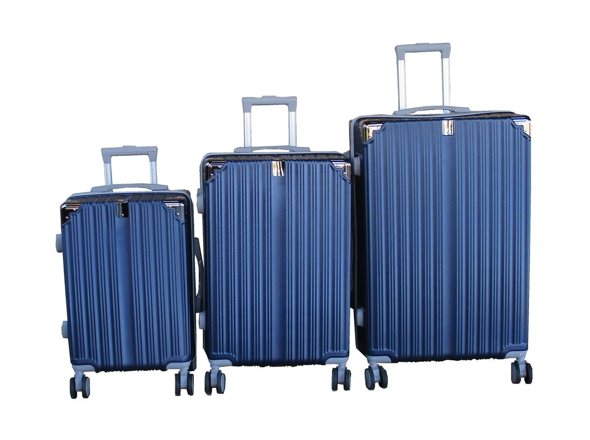 Navy luggage set, 3-piece suitcase set, ABS hardshell luggage, spinner wheels, telescoping handles, combination locks, travel suitcases, durable luggage, lightweight luggage, navy blue luggage, hardside spinner, suitcase with compartments, travel essentials, luggage set with wheels, navy hardshell suitcase, grooved texture luggage, zippered suitcase, metallic corner protectors, suitcase set small medium large, luggage for travel, ABS suitcase, modern luggage, travel suitcase set.