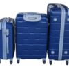 Navy luggage, 3-piece luggage set, ABS luggage, spinner wheels, telescopic handle, durable luggage, combination lock, travel suitcase, lightweight suitcase, hard-shell suitcase, blue luggage, luggage set, multi-directional wheels, interior straps, mesh pocket, reinforced corners, zipper closure, navy blue, travel bags, secure luggage, impact-resistant, stylish luggage, large suitcase, medium suitcase, small suitcase.