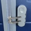 Inside, the luggage offers thoughtful organization with straps and a mesh pocket, helping you keep your belongings tidy and secure. Additionally, the reinforced light blue corner protectors add both style and extra durability. The zipper closure ensures easy access, while the striking navy color provides a timeless, elegant look.