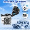 Removable Suction Cup Mount: Industrial strength suction cup firmly attach to any smooth surface with super suction, providing a wide range of motion and stability and it is an essential gadget for camera taking photos or recording in the car. It can attach your GoPro camera with this industrial strength suction cup to cars, boats, motorcyclists.