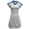 Netball Top/Skirt Kit Set for Women’s Team of 10-White/Color Trim & Keyring – White with Blue