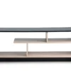 This furniture piece boasts a stylish linear African Wenge wood finish, giving it an elegant and contemporary look. Its design prioritizes durability, utilizing three hinges per door to prevent sagging over time. For smooth and reliable operation, Hafele German ball bearing runners are used for the drawers. Additionally, the two doors feature 3mm glass, adding a touch of sophistication and transparency to the overall design. This combination of aesthetics and practicality makes it a notable addition to any space.
