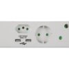 This Nexus Adaptor can be used with an extension or plugged into a wall socket. The adaptor has been designed to accommodate 3 pin or 2 pin devices or appliances. 2x USB sockets included for charging of tablets or smartphones.