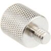 The Tecnix 3/8″(9mm)-16 Female To 1/4″(6mm)-20 Male Screw Adapter is a nickel-plated brass adapter that lets you mount devices with a 1/4″(6mm)-20 threaded mounting hole, such as a camera, onto a 3/8″-16 mounting screw, The surface is knurled for better grip.