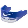 Create a personalized fit with the moldable, boil-and-bite design of the Nike Alpha Mouthguard. O-flow breathing channels help maximize your oxygen intake so you can focus on your performance. Flexible material offers a comfortable barrier, while a quick-release strap makes it easy to pop out so you can communicate on the field. 100% K-Resin Mouthguard 100% Ethylene Vinyl Acetate Boil Stick/Tether 100% Polypropylene