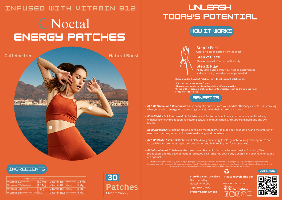 Noctal patches allow for higher absorption rates compared to capsules and tablets. Enjoy up to 8 hours of continuous energy with our innovative transdermal delivery system.