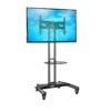 This terrific TV cart comes with two heavy duty support poles that provide easy height adjustment from 1030 mm (40.5″) to 1530mm (60.2″) thanks to the convenient spring plunges, depending on your space and your audience. Standard accessories include a camera tray and AV accessories shelf, as well as a handy cable management feature to keep cords from tangling or tripping users, making the AVA1500-60-1P TV stand an all- in-one display any organization would love.
