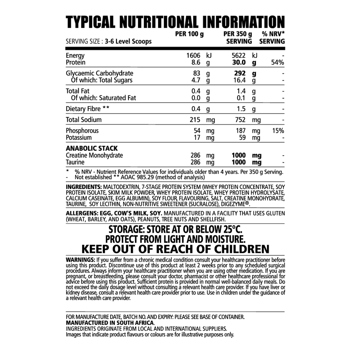 – As a nutritional supplement, add 2-6 rounded scoops (300g) to 500-700ml of cold water or full cream milk and consume 2-4 times daily