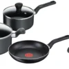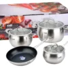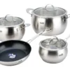 Dishwasher and oven safe up to 180°C, this set includes riveted stainless steel handles and a frying pan with a Teflon non-stick coating for easy cooking and cleanup. The set comprises various sizes to meet all your culinary needs.
