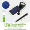 ⢠Advanced 1.5W Monocrystalline Silicon Solar Panel: The solar energy conversion rate is 30% faster than the old versions by using upgraded technology and material. Solar spotlight detects the surrounding light condition and automatically turns on and off, a smooth panel surface keeps dirt and debris from accumulating and blocking sunlight.