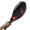 – It has a round shape which has a large sweet spot in the center of the padel racket. It has a low balance with a weight distribution closer to the grip and the round padel racket reduces the risk of injuries.