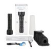 The Freyr is a dual-switch flashlight producing both white light and RGB lights. The main white light boasts a maximum output of 1,750 lumens and a beam distance of up to 360 meters. The three colored lights (red, green, blue) are helpful for night vision protection, investigation, or signaling. With a silicone traffic wand, it also can be used to direct traffic, mark a potentially dangerous area, etc. Powered by a 5000mAh rechargeable lithium-ion battery, it runs up to 15 days when using the moonlight mode. Freyr has two independent switches. You can select a colored light or moonlight easily with the side switch, or operate the white light tactically with the tail switch, which is also an interface with the magnetic charging cable. It also comes with a two-way pocket clip and a premium holster, giving you more convenience while on duty.