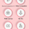 Provides freedom of movement without the hassle of cords, ideal for gaming.RGB Light Cat Ear Design: