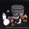 The spice jars are made out of PET food-grade material and aluminum lids.