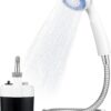 – Easy to operate : After the shower pump, water hose and shower head are connected, fully immerse the pump in your bucket/tub of water, long press on white button to start, wait a few seconds for the water pumped up, then water splashing. The outdoor shower kit comes with a suction cup and S hook for you to hang the shower head overhead or mount on any flat surface like car window, help you enjoy a convenient and hands-free shower.