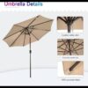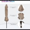 9ft diameter, 8ft high patio umbrella for garden, yard, pool, deck and any other outdoor areas. 38mm diameter base support required.