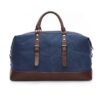 Oversized Leather Canvas Duffel Shoulder Overnight Bag – Blue