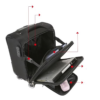 – Front opening and divider storage: There is a pocket in the front of the suitcase. Thus, it is convenient to take out your frequently used items in that pocket, and you don’t have to open the trunk. What’s more, there are many compartments inside the trunk, so you can put different items inside the compartment