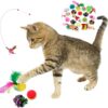 The pack consists of Cat Teaser Wand, Interactive Feather Toy, Fluffy Mouse, Crinkle Balls and etc.