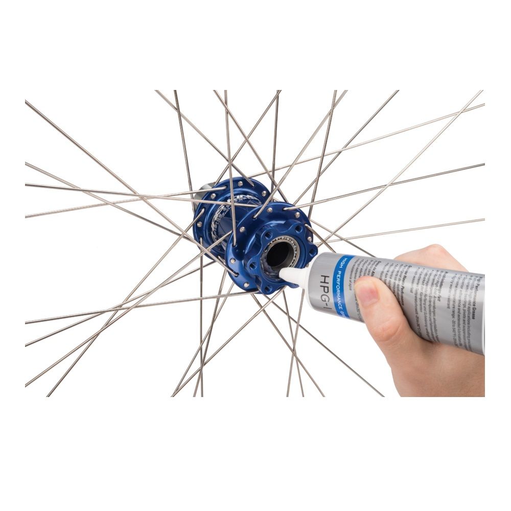 Park tool HPG-1 was specifically formulated to aid in the performance of bearing applications such as bottom brackets, hubs and headsets, as well as pivots and suspension components. HPG-1 is highly water resistant, offers superior adherence and extended lubrication life, and will not harm carbon fibre