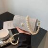 Pearl-Embellished Crossbody Sling Bag Cellphone Pouch Messenger Flap Bag – Silver