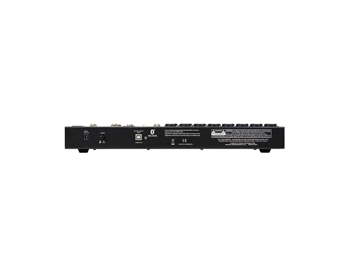 The PV 14 BT includes 8 channels of reference quality mic preamps, 8 direct outputs for recording, a stereo channel, media channel with Bluetooth wireless input, high quality digital effects with LCD display, streaming USB out, MP3 playback via USB A input, Peavey’s exclusive Kosmos audio enhancement, 48-volt phantom power, dual selectable control room outputs, 4 channels of compression, one channel of on board selectable guitar preamp, 3-band EQ per channel with bypass, channel mute buttons, aux send, signal clip indicators, and a stereo master LED meter bridge. This amazingly versatile mixer is at home both in the studio as well as live applications.