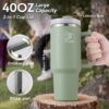 PEISKOS 1200ml Tumbler with Handle Straw Stainless Steel Vacuum Mug – Bay Leaves