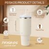 Ergonomic Design PEISKOS 40 oz tumbler with lid and straw features an ergonomic, comfortable grip handle. The wide and thick handle provides relaxation by reducing pressure on your knuckles.