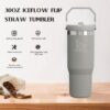PEISKOS 890ml Stainless Steel Tumbler with Straw Vacuum Insulated Flask – Ash