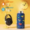 PEISKOS Insulated Water Bottle Leak Proof Flask with Straw for Kids 400ML – Blue Dinosaur