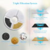 Food-grade Material & Triple Filtration System The pet water fountain is made from food-grade material, BPA free PP resin, 304 stainless steel tray, which is safer and more durable than plastic cat fountain. 1 filter is equipped to keep the water fresh and meet human health standards.