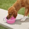 This pet food and water bowl is completely collapsable which makes it perfect for home use, road trips, hiking, long walks, or beach days with your furry friends! The two holes on each side of this bowl allow for it to be hung up for storage or hooked onto a backpack for traveling with your pets.