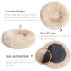 Ideal Deep Sleeping Bed: With slightly raised and curved edges, plenty of soft cotton filling, the round, and fluffy dog calming donut cuddler pillow can hug your pets who love to curl up and provide support to their heads and necks, making them feel safe, reduces anxiety and improves sleep quality.