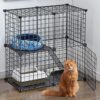 Black coating to prevent rust. The platform is connected by a ramp, allowing your pet to climb and explore safely. The distance between the wires is only 0.5 inch. Don’t worry about the pet’s head or foot getting stuck.