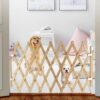 Wooden Accordion Gate is made from high-quality bamboo, natural colour will match your furniture perfectly. No chemical paint was used for colouring, the folding dog gate is nontoxic, harmless and odourless, and it can be used safely for small and medium dogs!