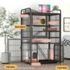 The cat exterior with door lock is made of sturdy metal mesh, reinforced square tube, rust-proof and corrosion resistant. The cat playpen with large distance between the wires is reasonably designed and will not harm the pets. Anti-collision door lock design – prevents cats from opening the door by itself, durable.