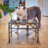 -Sturdy Frame: Strong black metal frame with anti-slip feet and rubber edges to keep bowls secure and steady.