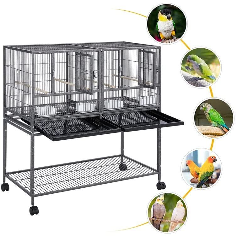 Pet Large Centre Divided Flight Bird Cage & Removable Rolling Stand-160CM