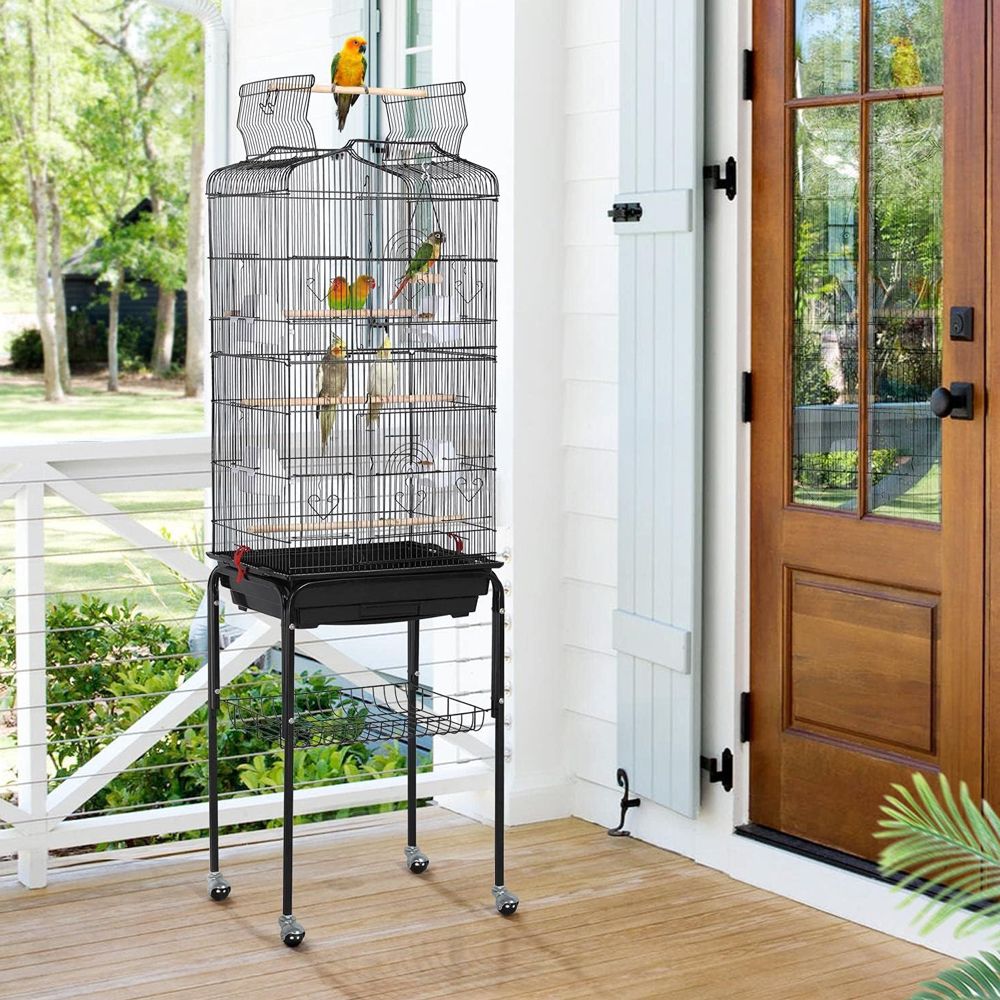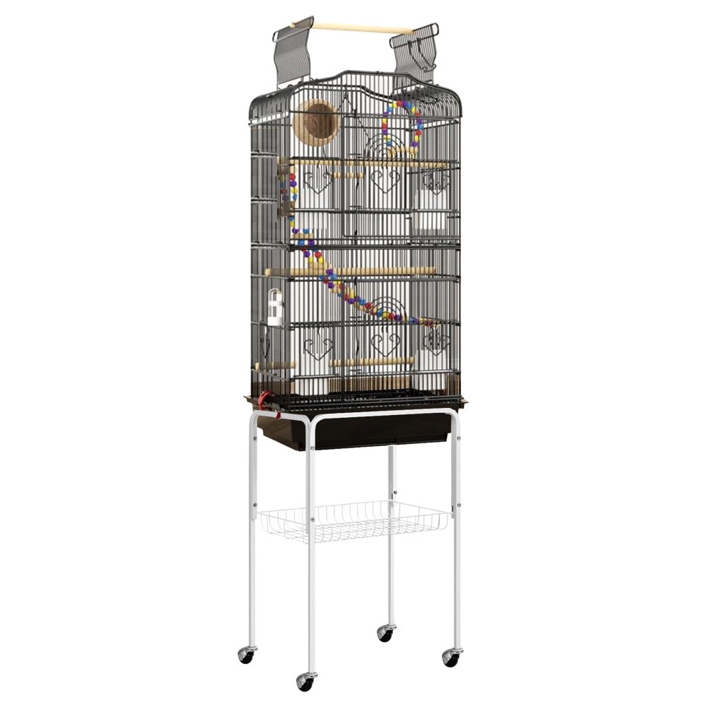 Pet Large Open Top Bird Cage with Toys & Display Stand (163cm) – Black