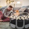 Regularly check and clean the playpen to remove dirt, debris, and pet hair. Follow manufacturer instructions for washing and maintenance to prolong its lifespan.