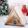 The pet tent is made of 100% high quality cotton and wood, which is easy to clean, Machine washable.