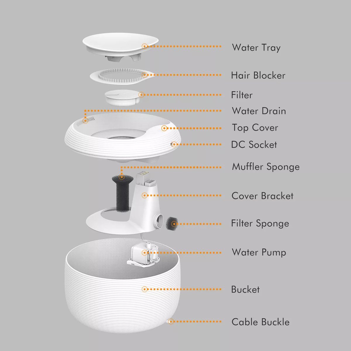 With a 2.5L capacity, the Pet Pod stores ample water, while the easy to lift off lid makes it easy to clean and refill the water as needed. To top up the fountain, you can also simply pour water into the top tray.