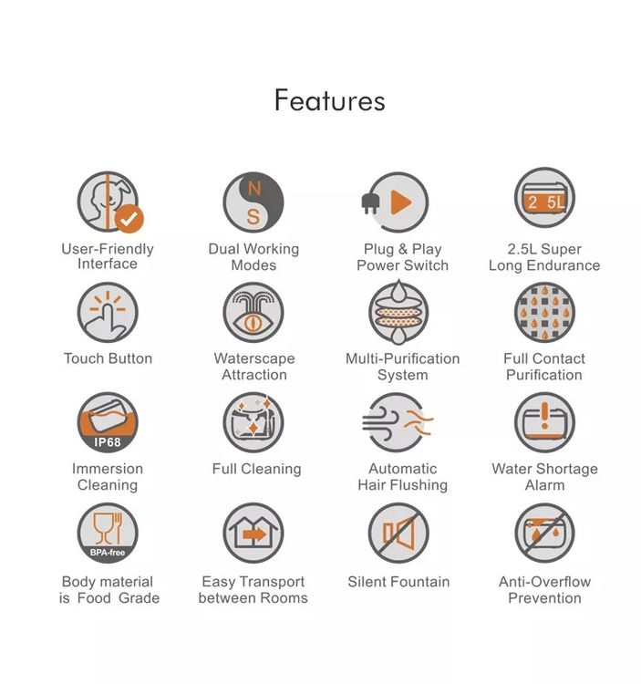 A super silent motor together with the design for the water flow, ensure this water fountain is ultra-quiet and won't keep you out of your sleep.