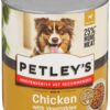Petley s Dog Food chicken with vegetables is premium pet food that has a natural recipe with meat as #1 ingredient. Made with fresh meat, has no added colours or preservatives. Based on a natural formulation with added vitamins and minerals A complete meal solution for your pet. Made with care, Petley's Is Vet Recommended.