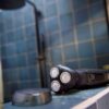 The shaver head flips open at the touch of a button to rinse clean under running water.